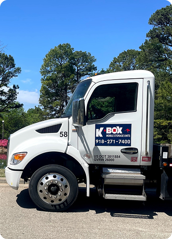 To obtain a quote, please complete our Request a Quote form, indicating if you want a 16ft or 19ft container, the type of job (moving, on-site storage or storage with K-BOX) and the zip code for delivery. If you know where you are moving, please provide your new zip code or address. For the personal touch, please call our office manager, Marlena, at 918-271-7400 or text us at 918-381-9204. We will walk you through the process.