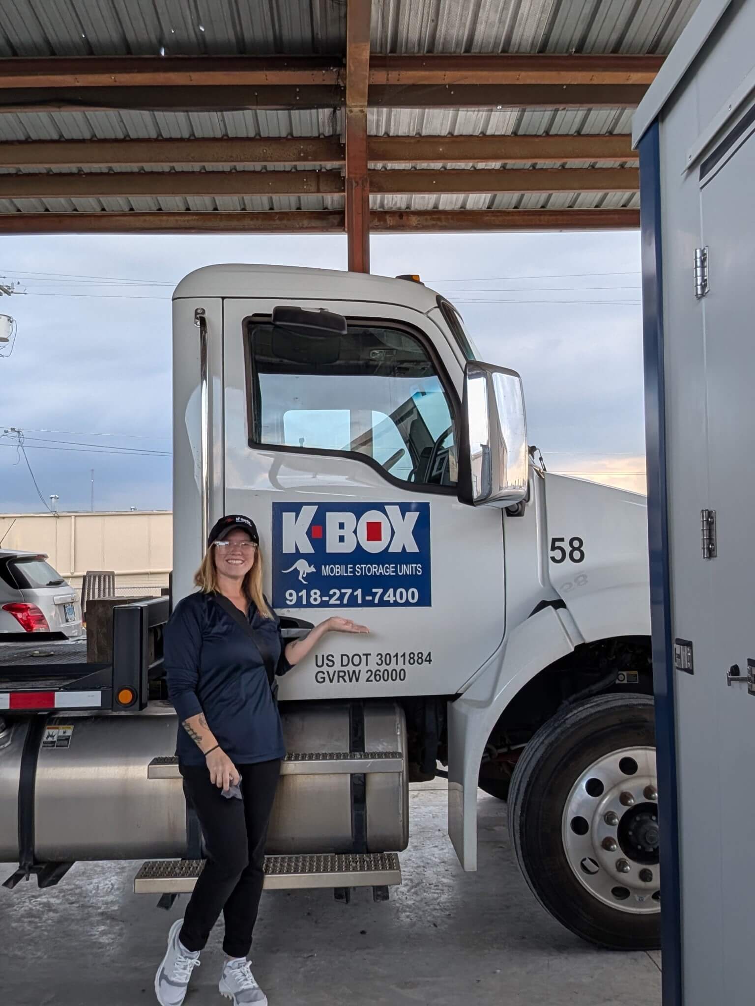 You can reach our office by phone at 918-271-7400, or text us at 918-381-9204. Or, Request a Quote and tell us your zip code and box size, and whether you want to move, store the K-BOX on-site, or store the K-BOX with us. Outside storage with K-BOX is free, and you can enter our gated lot to access your K-BOX while it is stored. Be sure to click on the offer to receive 25% off your 1st month’s rent! Our office manager, Marlena, will call you to answer any questions you might have.